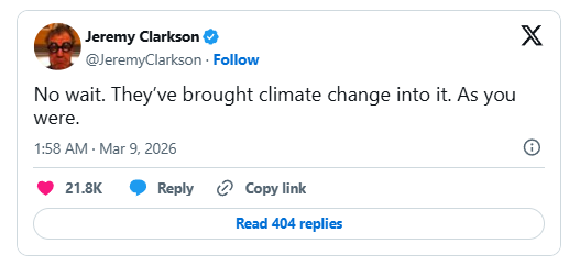 And it seemed some of his followers were in agreement. “Even the best shows can’t escape the climate conversation,” one X user replied.
