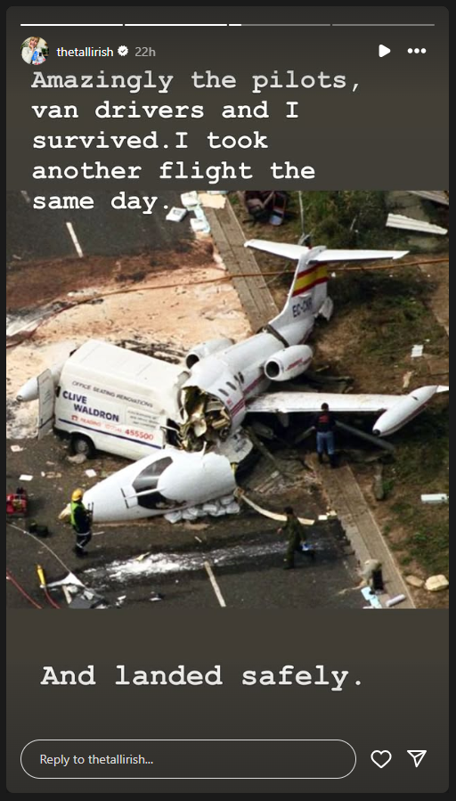 Posting on Reddit, one fan wrote of the crash: ‘That sounds terrifying, enough to put anyone off flying.’