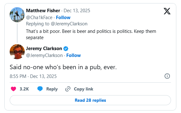 Jeremy Clarkson brilliantly fires back as he responds after facing pub boycott threats over ‘right-leaning’ political bans