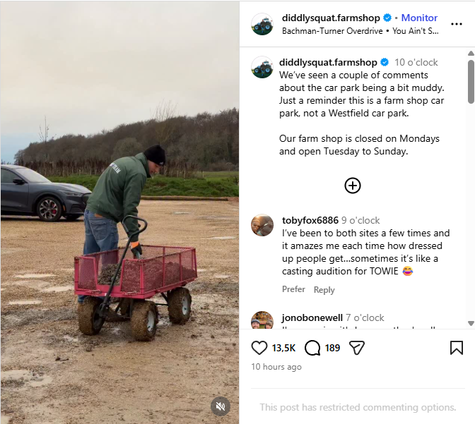 As a third highlighted: “I’ve yet to visit a farm shop that doesn’t have a muddy car park with potholes and puddles!