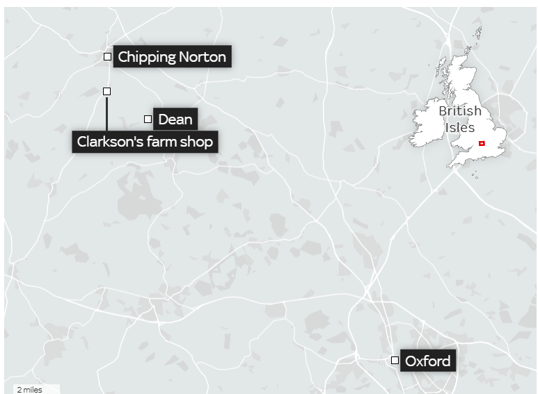 Clarkson’s “Diddly Squat Farm” in Chadlington is around three miles from the hamlet of Dean where Mr Vance is staying.