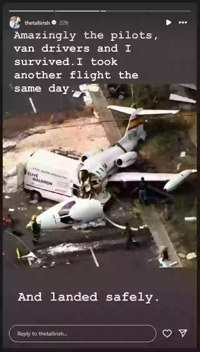 She shared the photos on Instagram, saying: “‘Amazingly the pilots, van drivers and I survived. I took another flight the same day. And landed safely.”