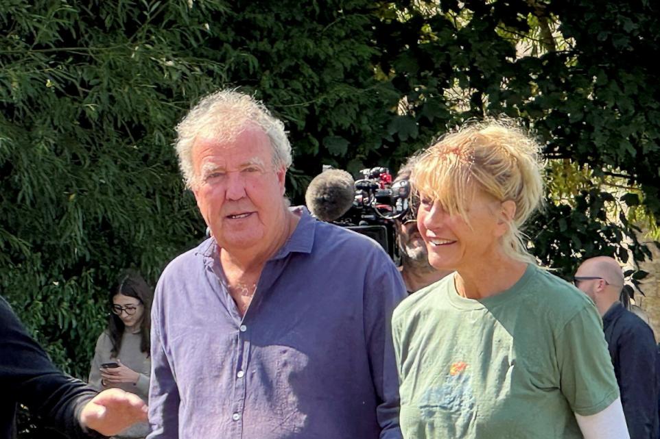Jeremy Clarkson and his girlfriend Lisa Hogan at his Cotswolds pub on opening day in August of 2024.