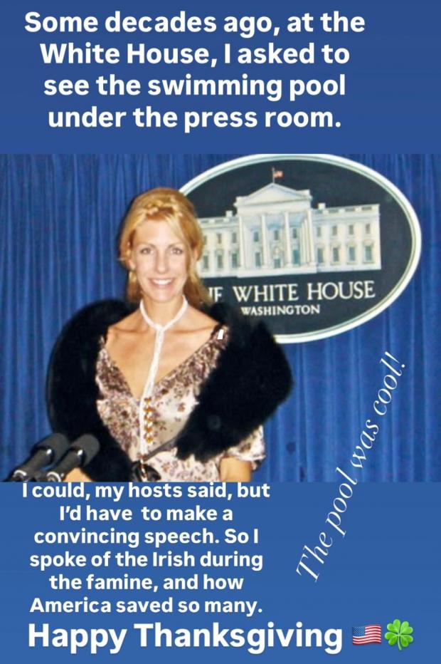 It was in celebration of Thanksgiving on Thursday, November 27—a holiday traditionally marked by gratitude, family gatherings, and reflections on history—that Hogan chose to share this personal gem from her past. Taking to her Instagram Story, she posted a nostalgic photograph of herself standing at the White House, evoking a sense of timeless elegance. Accompanying the image was a heartfelt caption that recounted a bold request she made during her visit some decades ago: “Some decades ago, at the White House, I asked to see the swimming pool under the press room. I could, my hosts said, but I’d have to make a convincing speech. So I spoke of the Irish during the famine, and how America saved so many. The pool was so cool! Happy Thanksgiving.”