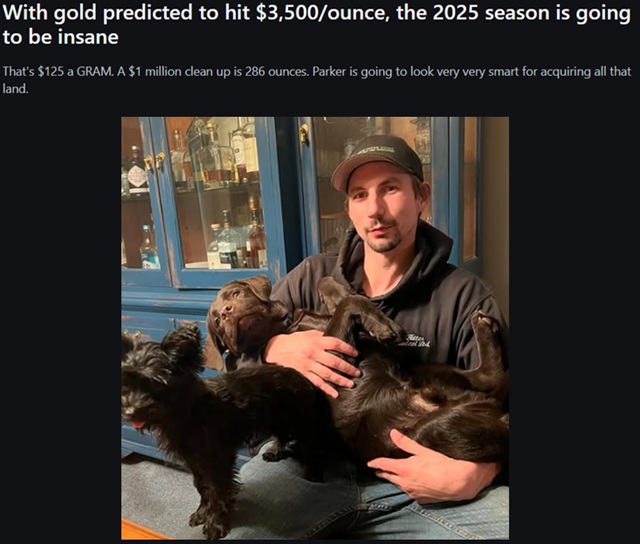 Some Gold Rush fans on social media discussed why Parker Schnabel’s gold earnings may explode this year. According to the poster, the gold value is predicted to hit $3,500 per ounce this year, which could be a huge profit for Parker and his team. The OP also believes that Parker is now going to look very smart with his investment. Meanwhile, some people mocked Todd Hoffman, who recently bought a gold mine, and said he would still lose money despite the increase in gold value.