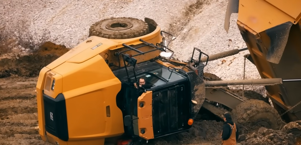 To stabilize the operation, Beets brought in Mason McIntyre, a two-season veteran, hoping his experience would steady the rookies. McIntyre quickly noted the site’s hazards: “It’s sloppy down here—deep ruts, soft spots everywhere.” Yet, the ground proved treacherous for even the pros. In a shocking twist, McIntyre’s truck also rolled after hitting a soft patch, flipping the massive machine onto its side. “Got a little soft down there… ground just gave out,” he admitted, visibly embarrassed. Beets, in his 480 excavator, meticulously cleared the earth and pushed the truck upright, minimizing damage. “Mason, drive ahead,” he commanded, allowing operations to resume—but the double mishap highlighted the risks of his rookie-heavy strategy.