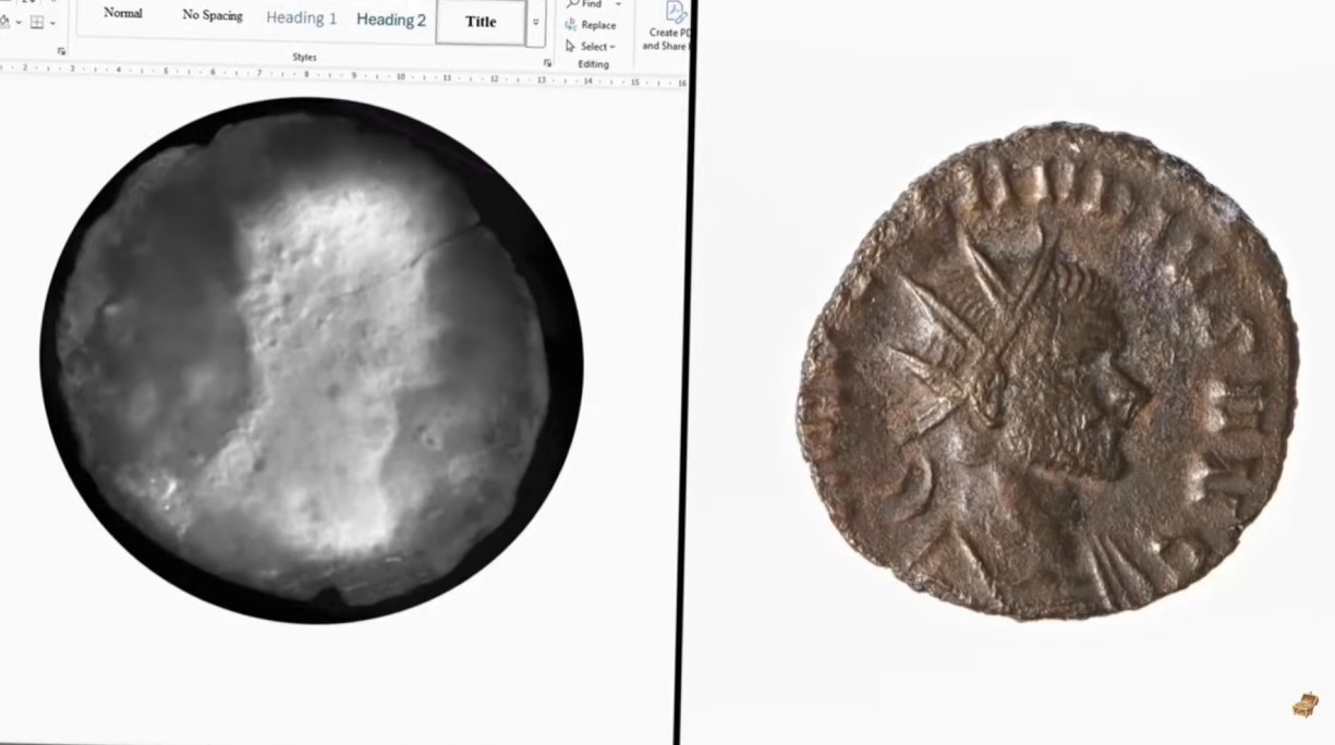 The episode’s bombshell came early: a well-preserved Roman coin discovered on Lot 5, analyzed by archaeometallurgist Emma Culligan using X-ray fluorescence (XRF) testing and CT scans. The coin’s composition—traces of copper, iron, calcium, silicon, and silver—matches ancient Roman alloys. CT imagery revealed lettering, a bust, and workshop markings identifying it as from the reign of Emperor Claudius II (268-270 AD), making it nearly 1,750 years old. “A Roman artifact buried in Nova Scotia—what the hell is going on?” exclaimed team member Rick Lagina, echoing the crew’s astonishment.