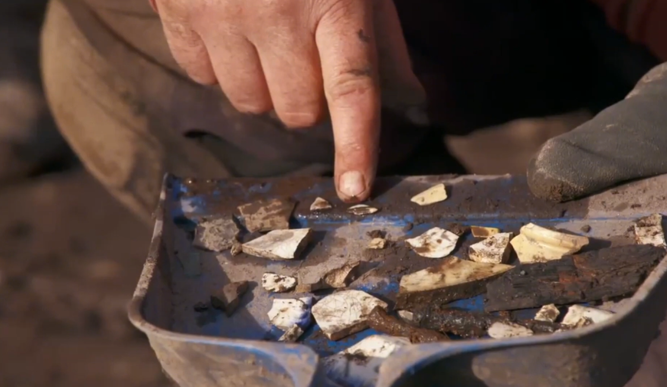 Elsewhere on the island, excavation work continued to uncover signs of extensive historical activity. Along the swamp, archaeologists revealed more of the stone roadway, while pottery fragments recovered nearby were identified as creamware and annular ware, dating back to the mid-18th century.